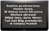 | Komputer z oprogramowaniem do wyświetlania na monitorze dowolnych treści. Komputer może być w dowolnym miejscu na terenie kościoła. |