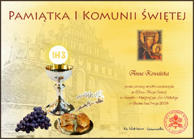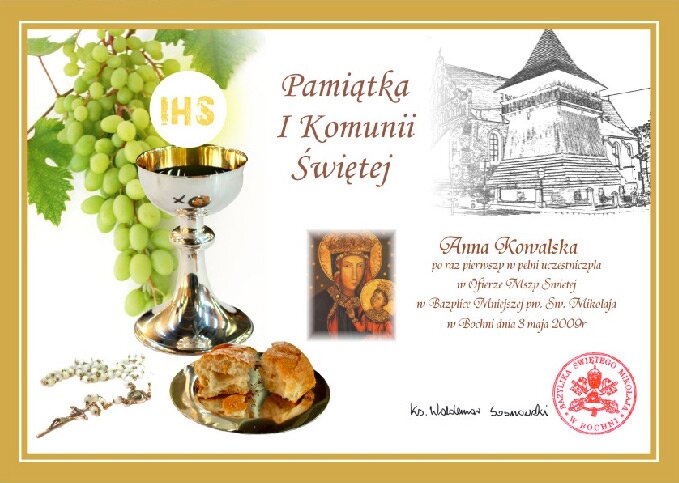 obrazki komunijne czy lampiony. Zaproszenia jubileuszowe i papier firmowy.
